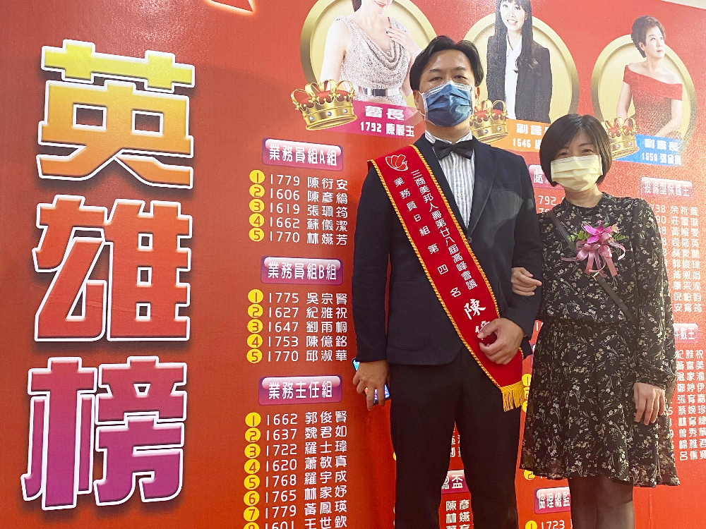 得到此殊榮,首先要感謝客戶的支持,因為有你們,億銘才能在三商美邦一步一腳印的走下去,再者感謝我的主管-玉萍業務經理,在每次行銷的過程,給我許多建設性的建議,提高成交的機率,還有在面臨挫折的時候,給我最有力的後盾!