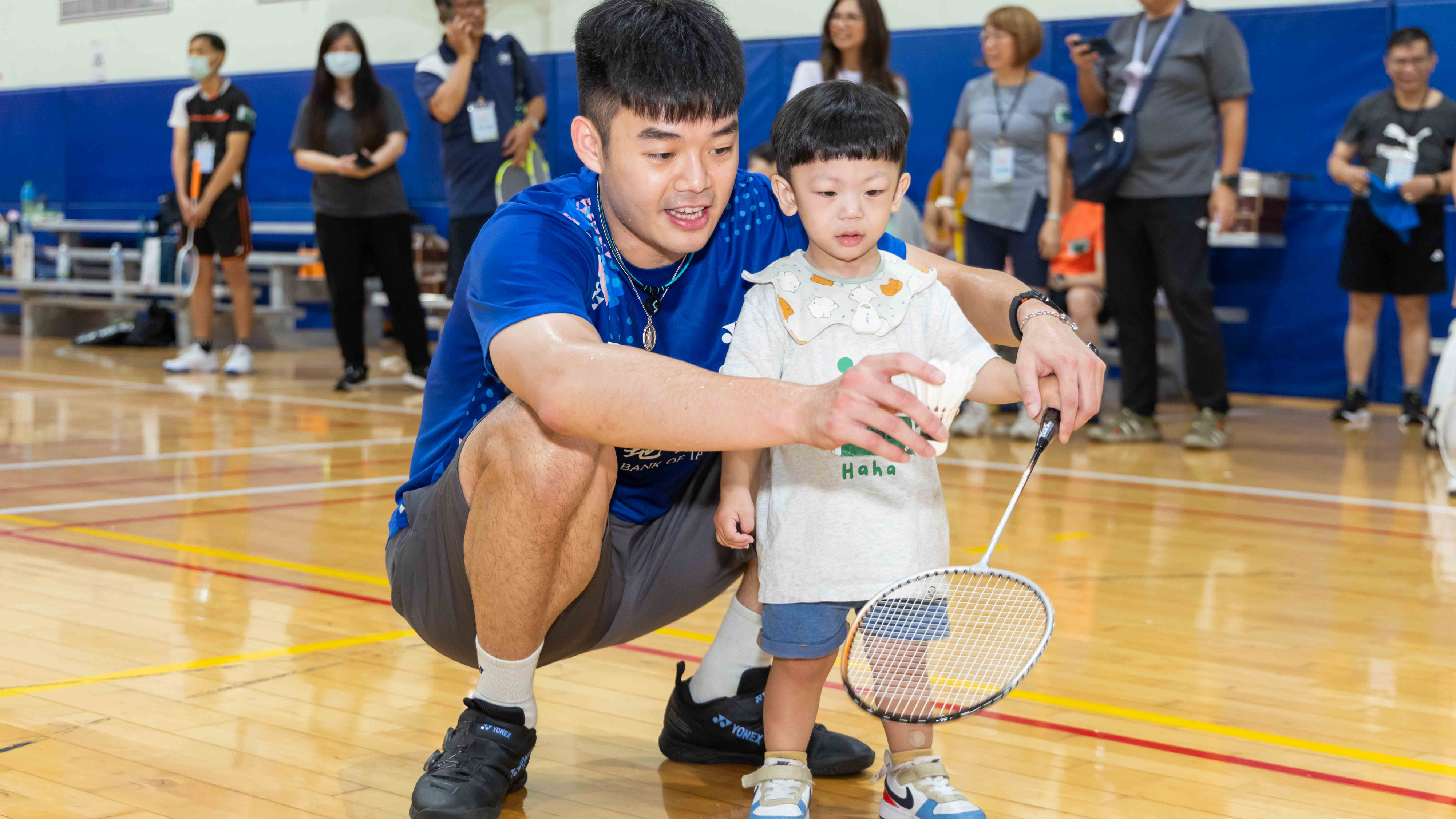 王齊麟帶著滿滿的愛心教罕病小朋友打羽球。