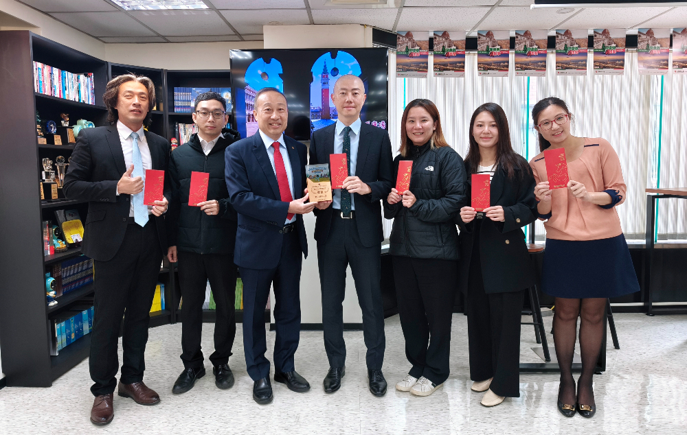 陳宏昇總經理(圖中)頒發冠軍獎盃與獎金。合照由左至右:葉庭瑋、張庭瑜科長、謝淑芳法遵長、張世奇襄理、蘇永約、許家豪。