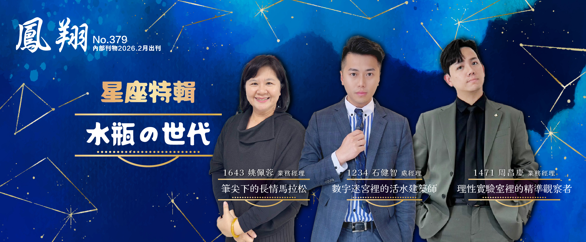 本次專題,我們特別選定在「水瓶月」出發,探討一群特殊的保險精英。水瓶座,一個在占星學中代表著「獨立思考」、「不按牌理出牌」卻又「重視群體利益」的星座。當這樣一群愛自由的靈魂,進入了最講求規律與契約的壽險產業,會產生什麼樣的化學反應?我們想知道,專業與個性,是否真的能達成最優雅的平衡。
