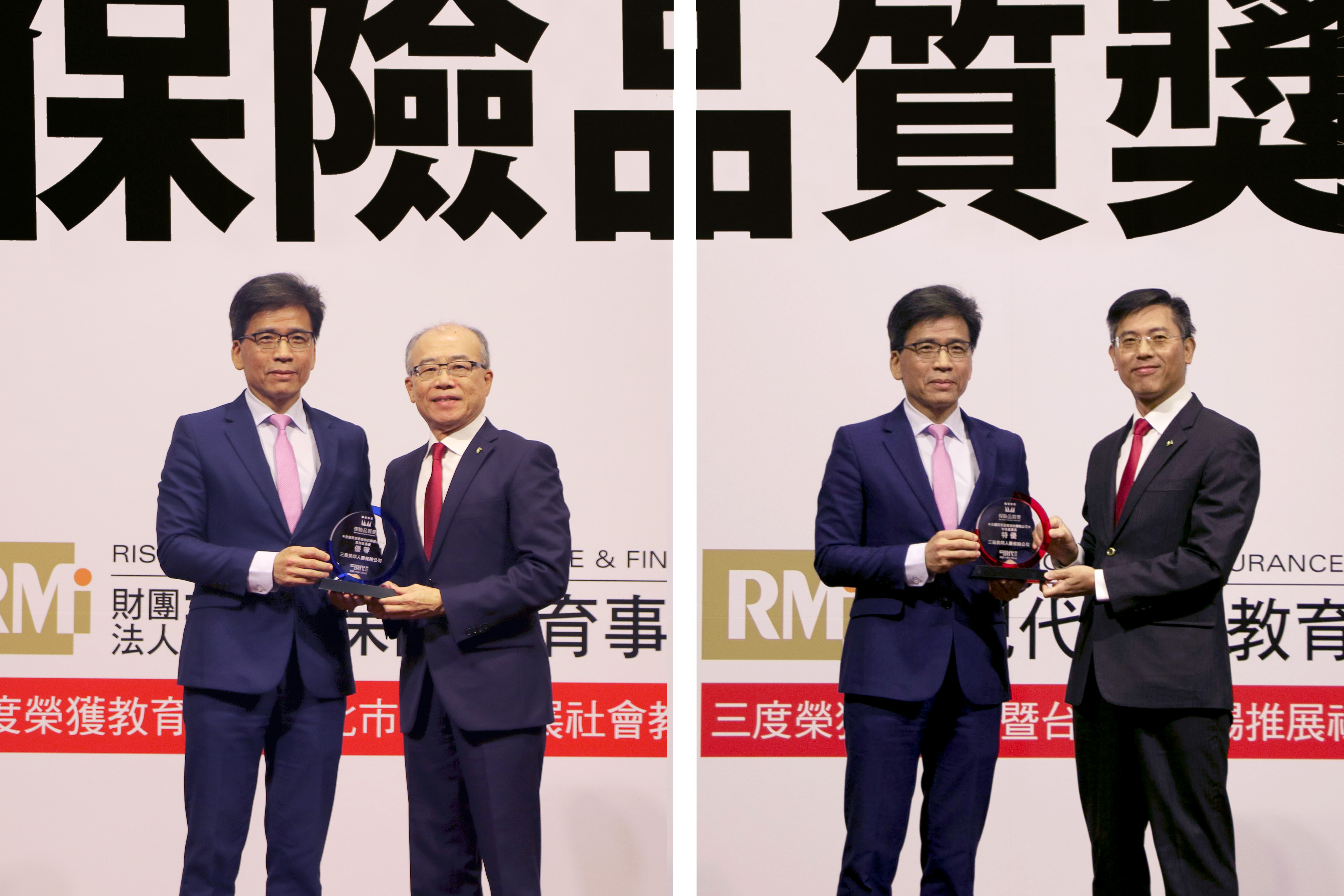 總經理陳宏昇(右圖右)、行銷長張財源(左圖右)代表接受「保險品質獎」獎盃。